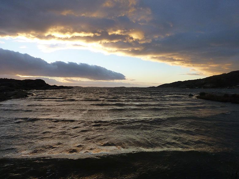 Stormig natt. P1-morgon vaggar mig till sömn. Träningsverken gör sängen knölig. Nyheterna intas i små doser. Det är som det är, för jävligt. Havet är vackert vresigt. Ett högtryck vräker in över land. ".